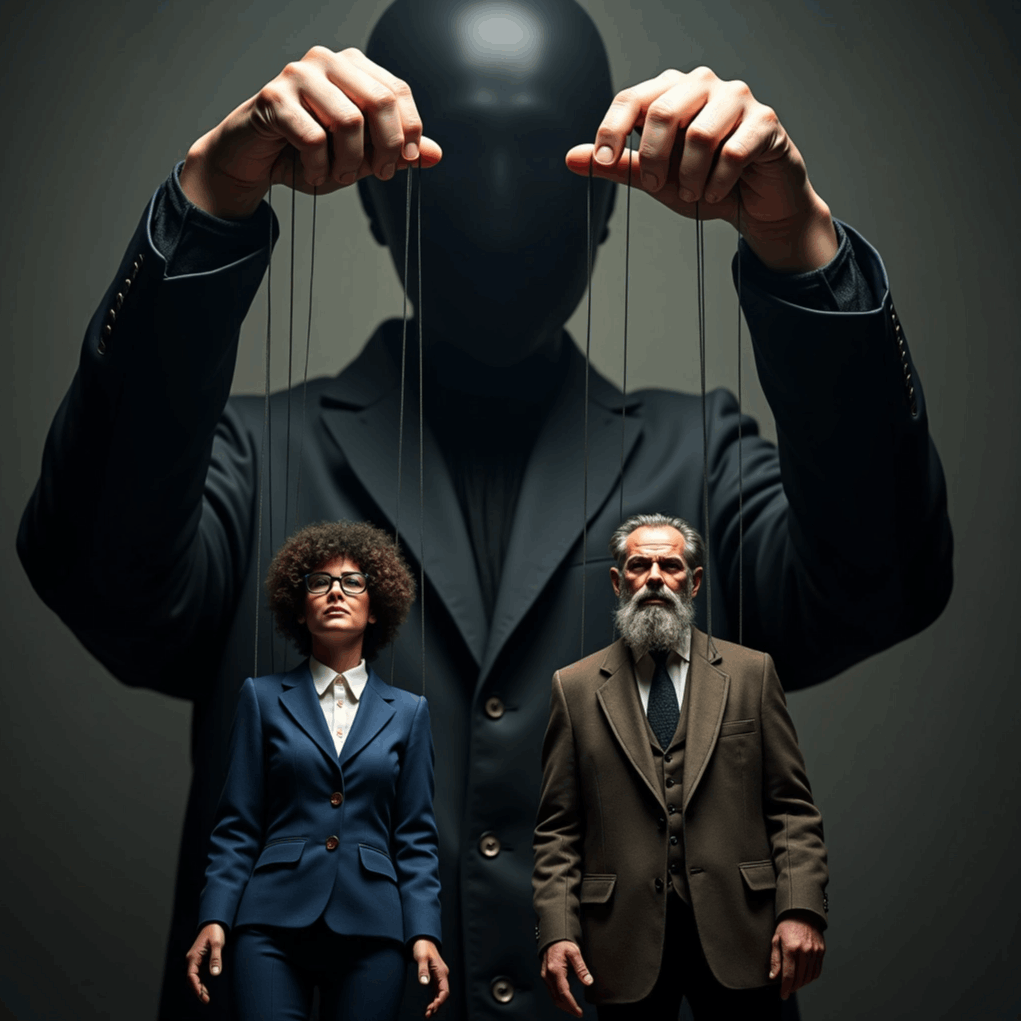 At this point, the controller no longer needs visible enemies or brute force. Psychological techniques alone are enough to direct behaviour. People are convinced, persuaded, and conditioned to act according to the manipulator’s will – sometimes without even realizing it. Gaslighting, narrative control, moral licensing, and intermittent reinforcement dominate. Fear is no longer the only tool; desire, confusion, loyalty, and social conditioning do the work. The controlled act as though they choose freely, yet their actions still serve the orchestrator.