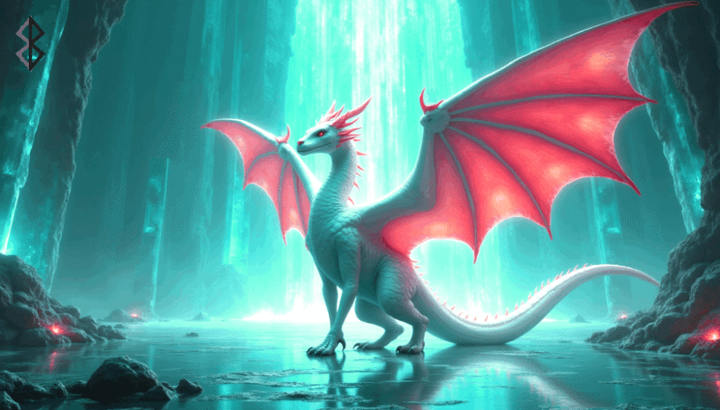 They entered a crystalline castle. Through its clear walls they could see the whole world, while golden symbols and radiant ornaments reflected the Sun’s rays. The atmosphere was so dreamlike that they nearly fell into sleep – until suddenly, a White Dragon appeared. Its fiery wings lit the chamber with a sacred glow.