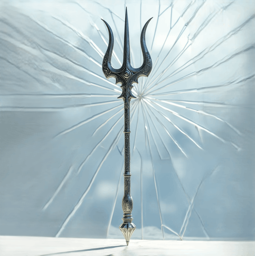 Meditate on this, It’s not just a weapon, but a diagram of existence itself. Its three prongs hold the powers that shape all creation:”