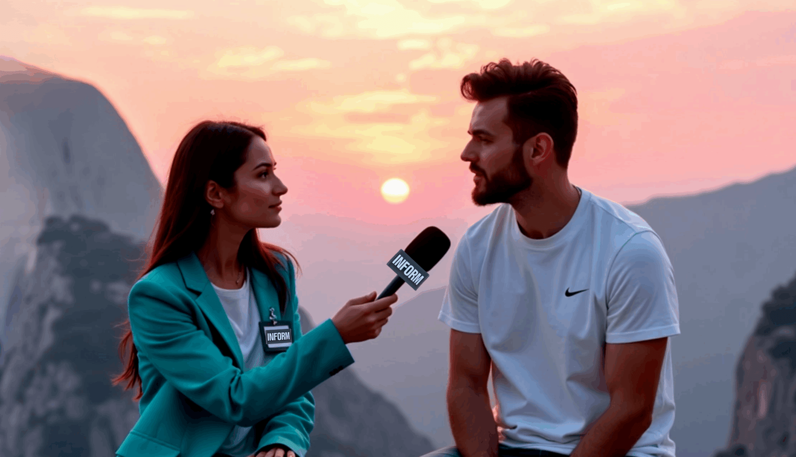 Sophia Green, reporter for IN-4M, in conversation with Daniel Rivers, mountaineer and seeker of inner heights.
